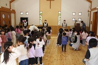 さくら組さんは、母の日音楽礼拝(水郷めぐみ教会)において子ども聖歌隊としてゲスト出演し、賛美の歌を歌いました♪「おかあさん」「おおしくあれ」の2曲、元気いっぱい歌うことができました!