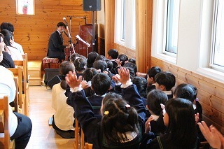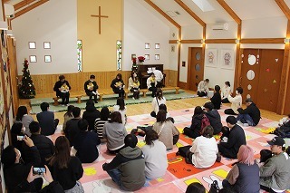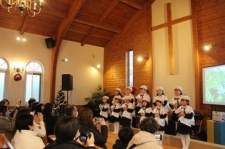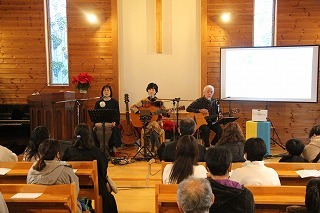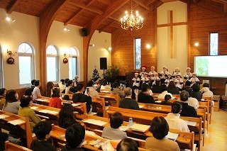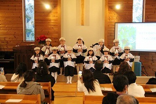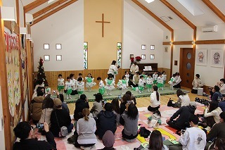 毎年恒例の「クリスマス音楽礼拝」が水郷めぐみ教会で行われ、さくら組こども聖歌隊もゲスト出演しました。また、音楽ゲスト「Olive」の素敵な歌声のハーモニーを味わうことが出来ました♪