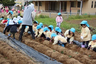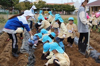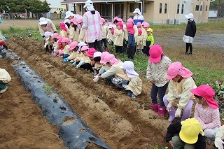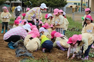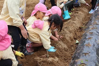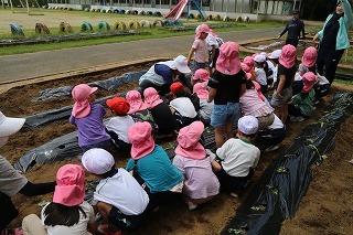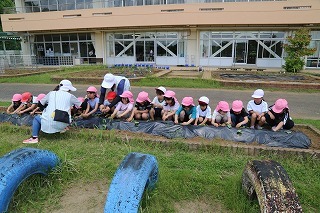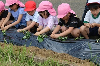 さつまいも苗植え体験:津知小にて(年長児)