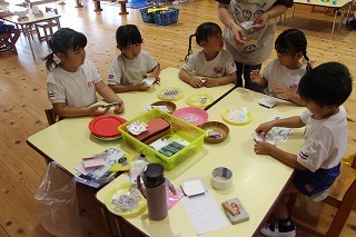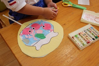 保育参観、うちわ製作したよ♪(さくら)