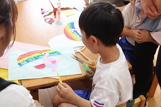 ばら組、ゆり組さんは、保育参観を行いました。お家の方と一緒に製作、オリジナルのうちわを作って、みんな嬉しそうでしたね!ご協力ありがとうございました★