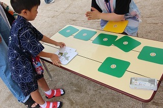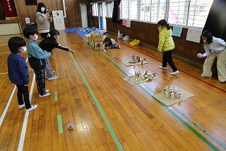 津知小1年生の秋フェスタにご招待いただき、アンパンマンバスに乗って小学校へ行ってきました。1年生が準備してくれたそれぞれのコーナーで秋の遊びを