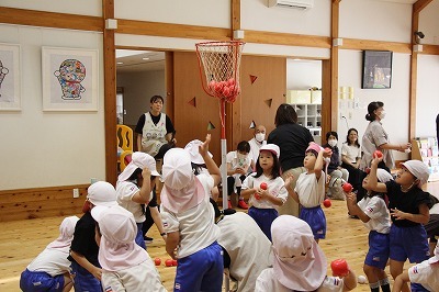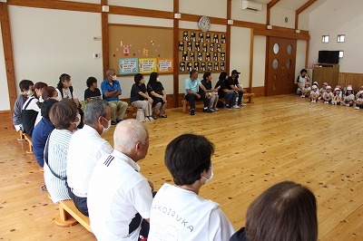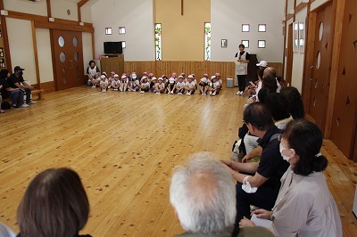 年長児さんは、祖父母参観がもたれました。大好きなおじいちゃんおばあちゃんと一緒に楽しいひと時を過ごすことが出来ました。楽しいゲーム、玉入れ、歌のプレゼントなどなど、最後はみんなで作ったプレゼント♪いつまでもお元気で!