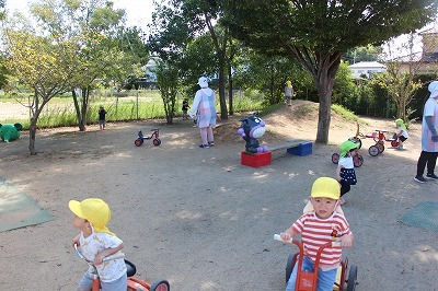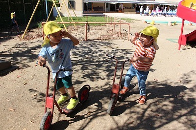 徐々に涼しい風を感じる日も多くなりましたね。未満児クラスのみんなは、園庭でのびのび自由遊びも楽しんでいます♪