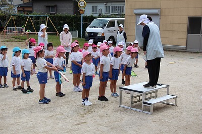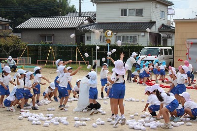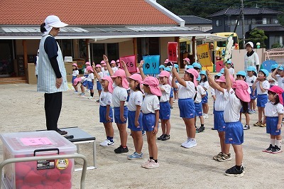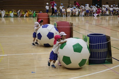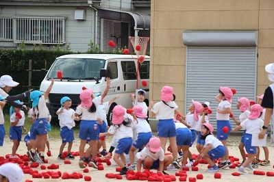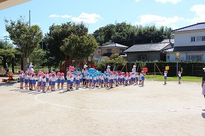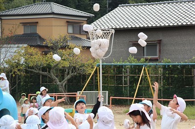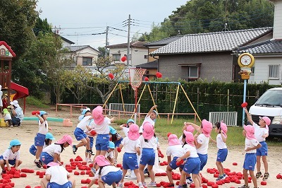 運動会に向けて、各クラス準備しています!朝の日課の時間には、開会式の練習や、玉入れも行いました。園庭でお遊戯の練習をしたり、涼しくなってきた園庭で元気に体を動かしています!