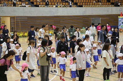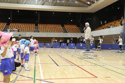 運動会の会場となるかみす防災アリーナに行きました(さくら組・ゆり組)。樋口先生も来てくださってマーチング講習も行い、マーチングの指導もしてくださいました。本番となる会場で、かけっこ、親子リレー、お遊戯の練習もできました。いよいよ運動会です♪よろしくお願いいたします!(※一般公開はございません)