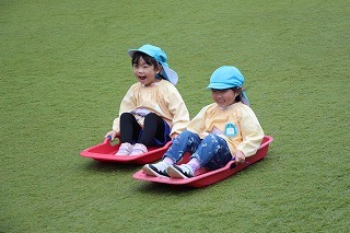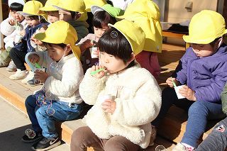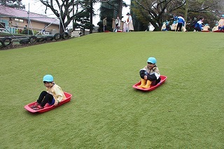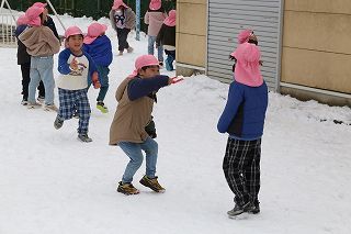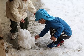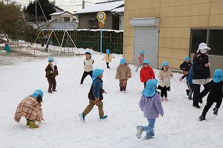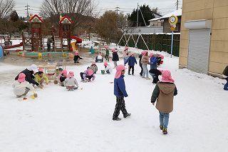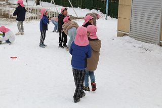 記録的な大雪が降りましたが、園庭に残った雪でさくら組ゆり組の園児たちは楽しく遊ぶことが出来ました♪