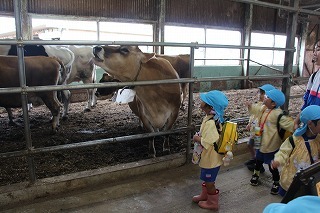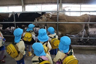 年中児さんは、ゆめ牧場へ遠足にいきました!天気が心配されてましたが、現地では雨も上がって、楽しいひと時を過ごして帰ってくることが出来ました。芝滑り、美味しいお弁当、乳しぼり体験、牛舎で大きい牛さんを見たり、ラビットハウスでうさぎの見学などなど、みんなで素敵な体験をすることが出来ました♪