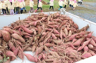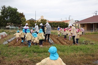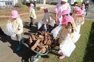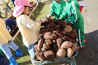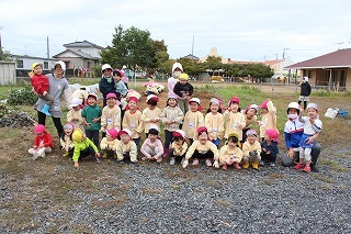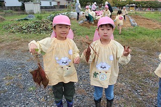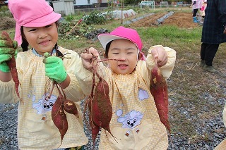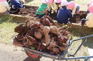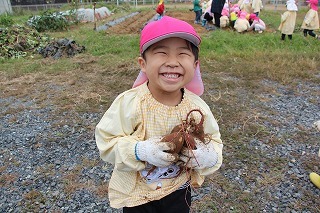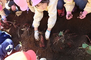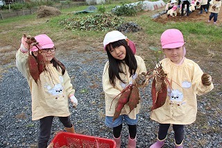 さくら組、ゆり組、ばら組のみんなで、沢山のサツマイモを掘ることが出来ました♪大きいお芋、長いお芋、連なっているお芋、いろんなお芋を掘って、沢山の喜ぶ声があちこちから聞こえてきました!お土産でサツマイモを持ち帰りましたので、ぜひご家庭で一緒に召しあがってみてください。(お休みしたお子さんは後日お楽しみに)