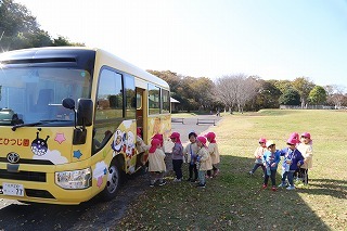 アンパンマンバスに乗って、県民の森へ遊びに行きました♪はじめてバスに乗った子どもたちも大喜び。森林浴をしたり、広ーい広場で思いっきり遊んだり、ドングリを拾ってお土産も。楽しいひと時を過ごすことが出来ました!また、バスに乗りたいね♪