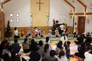 こひつじ園遊戯室にて、未満児クラスのクリスマス会がもたれました。それぞれのクラスの可愛い姿、成長した姿、ありのままの姿で発表することができました。保護者の皆様のご協力を心から感謝いたします!