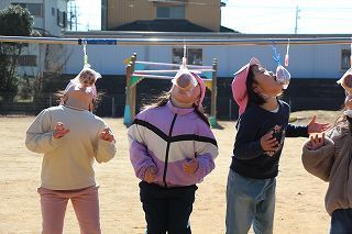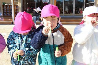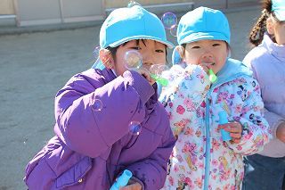 今日は、快晴の青空の下で、シャボン玉大会がおこなわれました♪みんなで一斉に吹いたシャボン玉が、たーくさんお空に溢れていました。みんな楽しそうに、上手に。そして苦手な子もチャレンジして♪すくすくラミーのお子さんたちも楽しく過ごすことが出来ました!