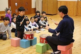 講師の先生をお招きして、マーチング講習が行われました。年中組さんは、新年度からリトル★エンジェルス♪で楽器を演奏します!4月から楽しみながら取り組んでいきます♪