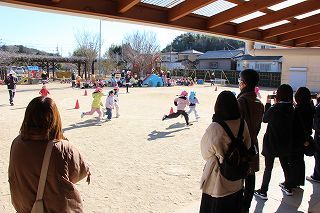 ばら、ゆり、さくら組の保育参観が行われました。日課からラジオ体操、各クラスのカリキュラムに沿って活動する様子をご覧いただきました。園庭でお父さんやお母さんと一緒に遊んでいる子どもたち♪とっても嬉しそうでした!